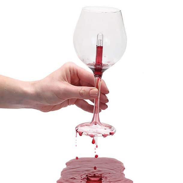 Когда налил в бокал вино, ножка изогнулась и вино уже в красивой луже на столе.