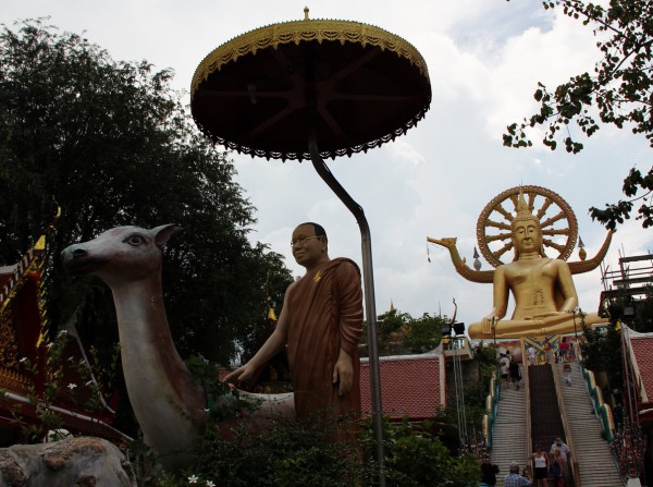 Двенадцатиметровая позолоченная статуя Большого Будды находится в монастыре на маленьком островке Фан рядом с Самуи. К островку насыпали дорогу, так что туда можно добраться на машине безо всяких проблем.