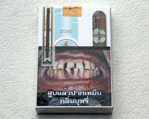 В Таиланде с курением борются своеобразным способом. Они размещают на половине пачки сигарет, сигарилл и сигар жуткие фотографии всяких болезней курильщиков.