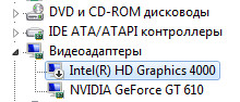 Похоже на Lucid Virtu. Поддержка этой технологии дровами точно стоит? Ну, а то, что вы отключили HD4000, означает, что вы не сможете использовать встроенный в него кодек, ктр. быстрее в разы, чем обработка на ядрах CUDA, коих и так небогато в вашей модели.