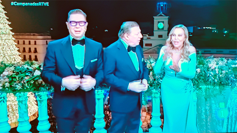 И там всегда эти десять минут до боя курантов - унылая тоска, где два каких-то дяденьки и тетенька со следами десятка пластических операций на лице молотят какую-то унылую чушь, и их периодически прерывают на включения ведущих этого же канала из других регионов - Барселоны, Валенсии, Канарских островов и так далее.