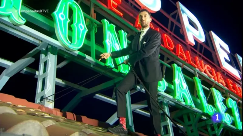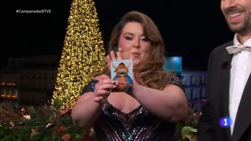 В этом году мы, как обычно, врубили RTVE La 1 и... слегка офигели. Потому что в этом году ведущими были - телеведущая, комик и актриса Lalachus (Лаура Юстрес Велес) и радиоведущий, комик и телеведущий Давид Бронкано. Они оба известны как большие юмористы со своим собственным авторским стилем.