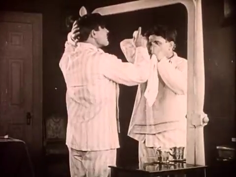 Upd: Подсказали, что все-таки трюк с зеркалом первым придумал Макс Линдер для фильма "Seven years bad luck flag" 1921 года. Я посмотрел - действительно.
