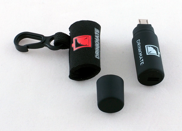 Нет ни батареек, ни насадок, ничего. Просто снимаете крышку, вставляете алкотестер в microUSB (есть также версия для айфона) и на телефоне запускаете соответствующее приложение DrinkMate.