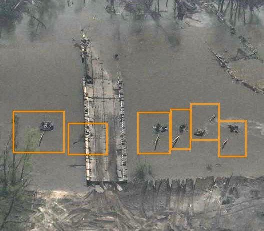 Неудачная попытка переправиться через реку Северский Донец у Белоголовки на прошлой неделе привела к уничтожению более 70 российских транспортных средств и потере по меньшей мере одного батальона техники, согласно оценкам, основанным на аэрофотосъемке места боя.