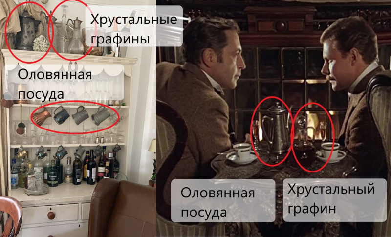 Понятно, что в его английском доме может быть много предметов, схожих с советским "домом" миссис Хадсон. Даже у меня в квартире такие есть. Но похоже ли это на настоящие лондонские интерьеры конца 19-го века - это вопрос по-прежнему открытый.