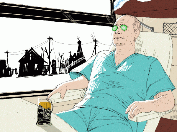 Однако если читать не очень хочется, то рекомендую посмотреть мультик, подготовленный этим изданием, который называется "Реальные фото из бронепоезда Путина", потому что мультик прям хорош!