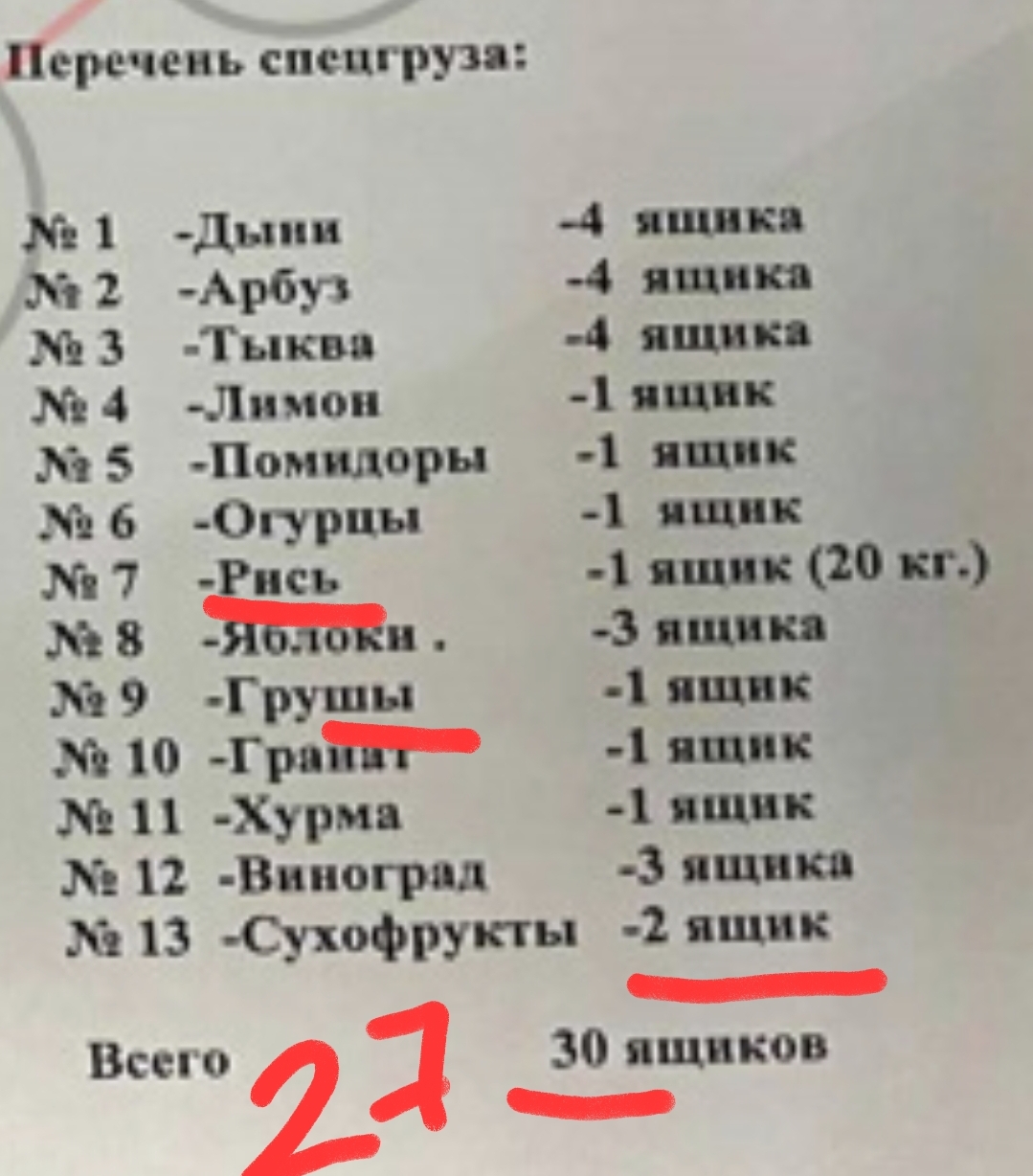 Тридцать ящиков овощей и фруктов - это тонкая издёвка, да.