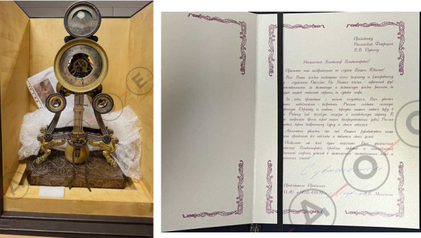 Наконец, глава «Новатэка» Леонид Михельсон, оспаривающий европейские санкции против его компании в суде, подарил Владимиру Путину старинные «часы-скелетон» работы тульских мастеров XVIII века. Они будут отбивать президенту оставшиеся минуты его жизни.