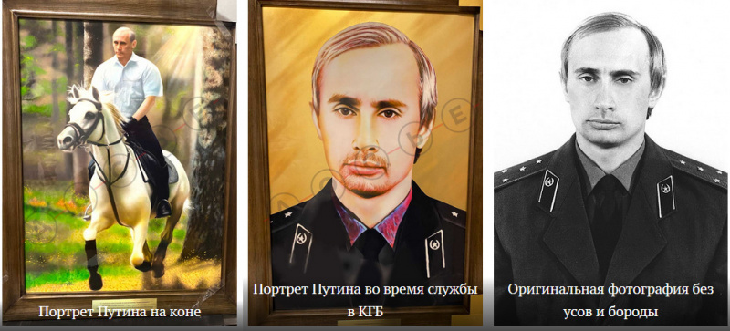 Так, генпрокурор страны передал президенту его портрет, выполненный в технике «реверсивного рисования на раскаленном стекле десятью пальцами», а посол Вьетнама в Москве решил переплюнуть коллегу и подарил сразу два портрета — Путина на коне и Путина во время службы в КГБ. Ко второму портрету художник пририсовал усы и бороду, которых не было на оригинальной фотографии, — видимо, чтобы подчеркнуть мужественность российского президента.