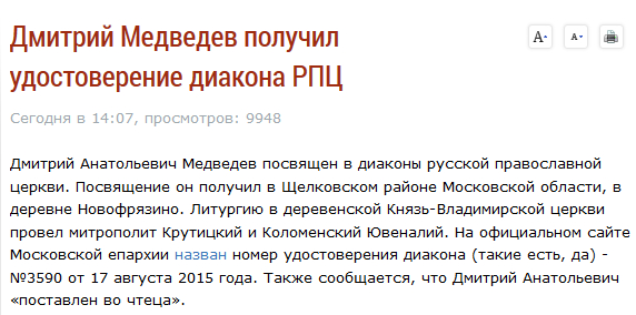 Диакон из Фрязино во главе правительства - это ли не промысел Б-жий?