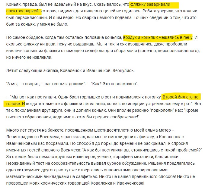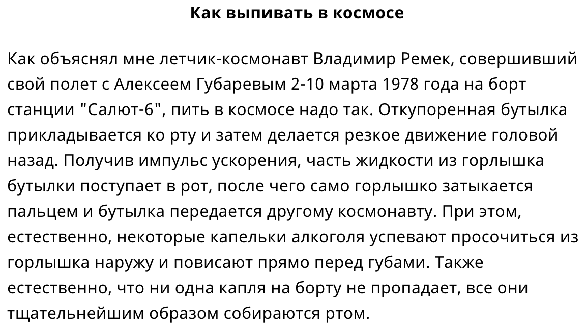 Не понял, в космосе можно бухать? Каждый день узнаёшь что то новое.