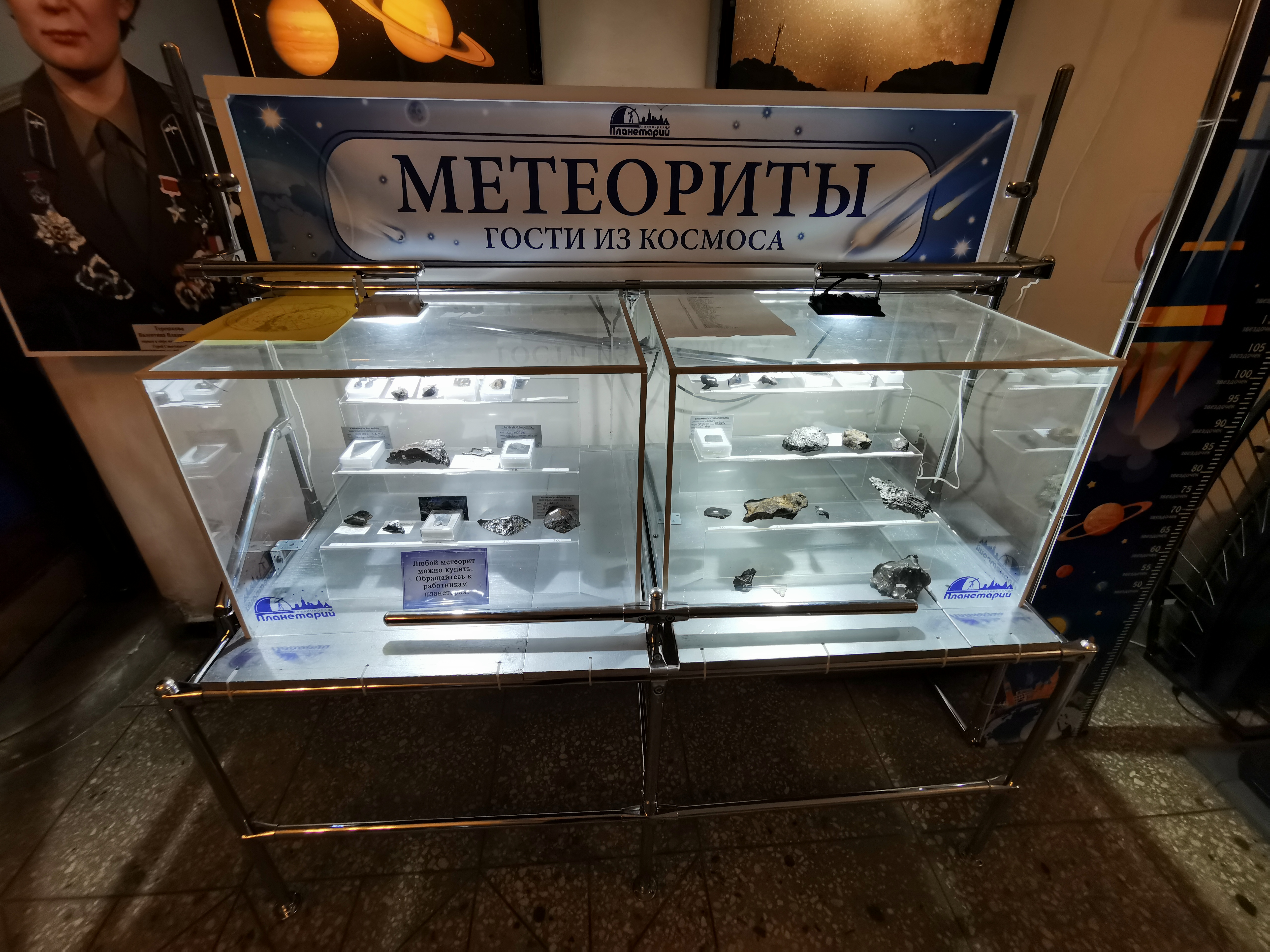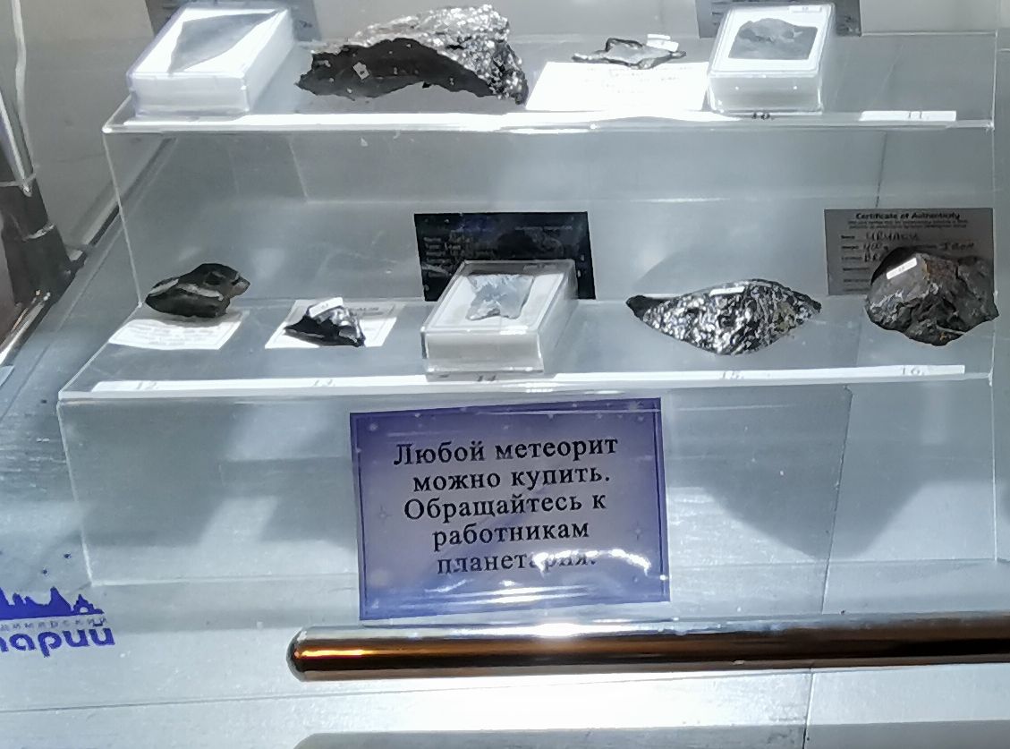 Был пару дней назад во Владимирском планетарии и вот что увидел в витрине с метеоритами! Неужели и правда продаются?? Обратился к работникам планетария, те ссылаются на таинственного директора.