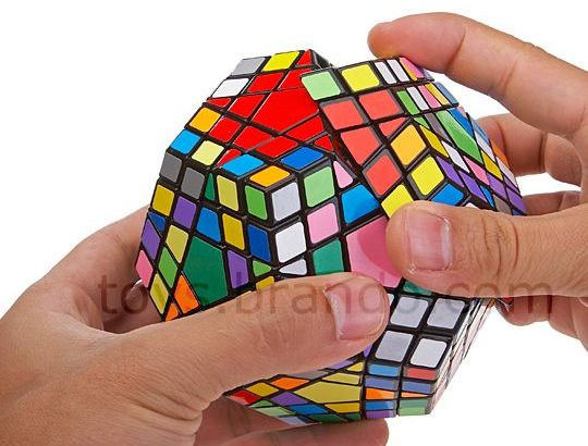 Хотя эта штука -- что-то новое. Я знал о существовании куба 2х2х2, а также Мастер-Куба (4х4х4) и особо жестких вариантов -- 5х5х5, 6х6х6 и даже 7х7х7. Но это вообще штука совершенно другого типа... Хотя я таки не уверен, что она сложнее пятимерного кубика-Рубика, который можно пособирать на своем компьютере.