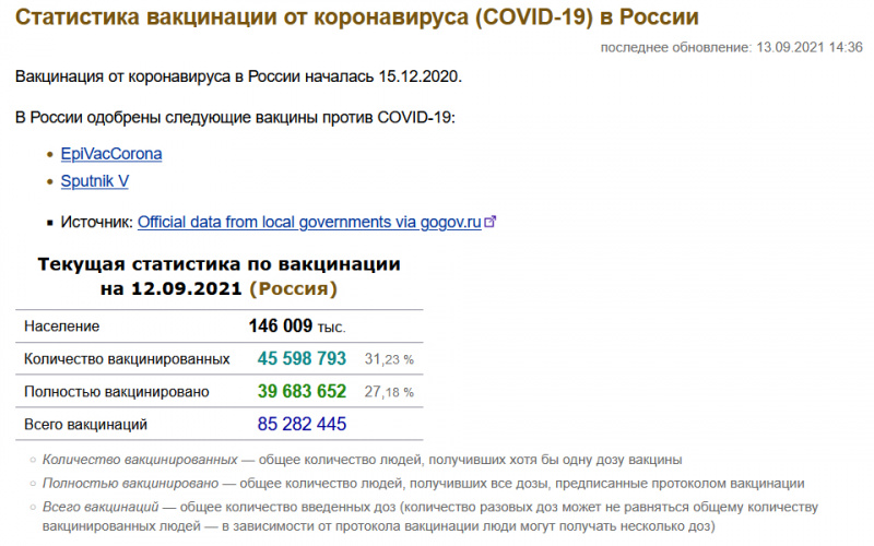 А что у нас, кстати, в России с вакцинацией? 31%, негусто.