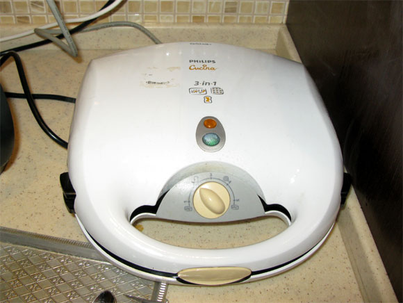 Бутербродница "мулинекс", тоже страдает отсутствием выключателя, точнее ей пофиг, а нам приходится постоянно из розетки её дергать.