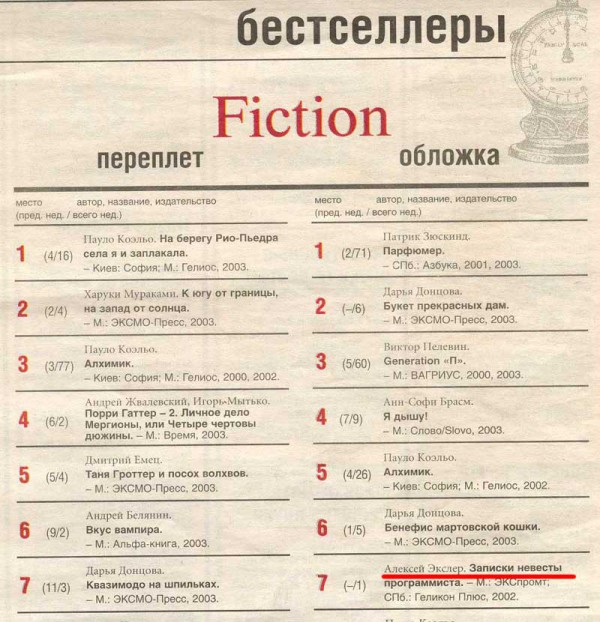 Ну, это на самом деле была какая-то случайность, потому что тиражи несравнимы. Впрочем, "Невеста" в общем и целом где-то 120 тысяч была продана.