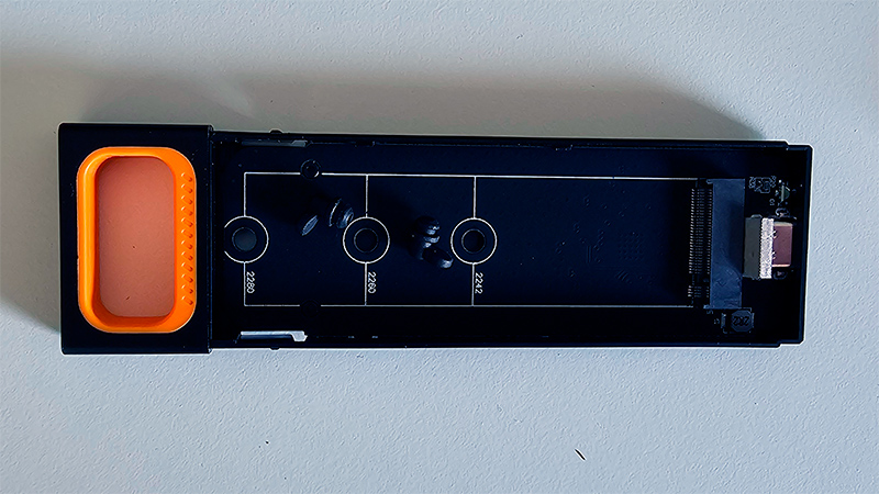 SSD прижимается прокладками к нижней части корпуса, а сдвигается верхняя