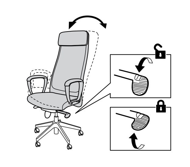 Коменты тут почитал, некоторые пишут, что у Маркуса нерегулируется наклон спинки. Да как так? Регулируется, ручка слева. Может у них есть удешевленный вариант Маркуса? Кто-то пишет, что у оригинальных колесиков нет блокиратора движения. Есть, когда нет нагрузки, они заблокированы, чтобы случайно не укатилось. Поэтому когда кресло двигаешь, нужно слегка нажать на него, чтобы колесики крутились, а не скользили.