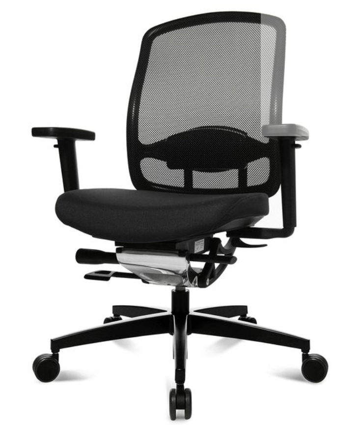 Сиденье покрыто тканью, спинка высокая, прямая, сетчатая, изгиб спинки сделан четко под спину, обычные подлокотники (мне регулируемые точно не нужны). Качество очень хорошее, 159 евро. Только колесики дурацкие, но они у любых подобных офисных кресел дурацкие, я их все равно поменяю на правильные, что я всегда делаю с любым новым креслом, которое ко мне приезжает.