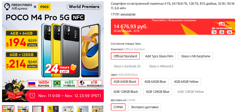 Ха, оказывается Poco M4 Pro 5G NFC уже не только вышел, но и доступен к покупке на Али. Причем еще пока (до утра завтра) со скидками. Вот полная спецификация. Я его куплю для изучения. Poco M3 Pro 5G NFC за свои деньги был вполне хорош.