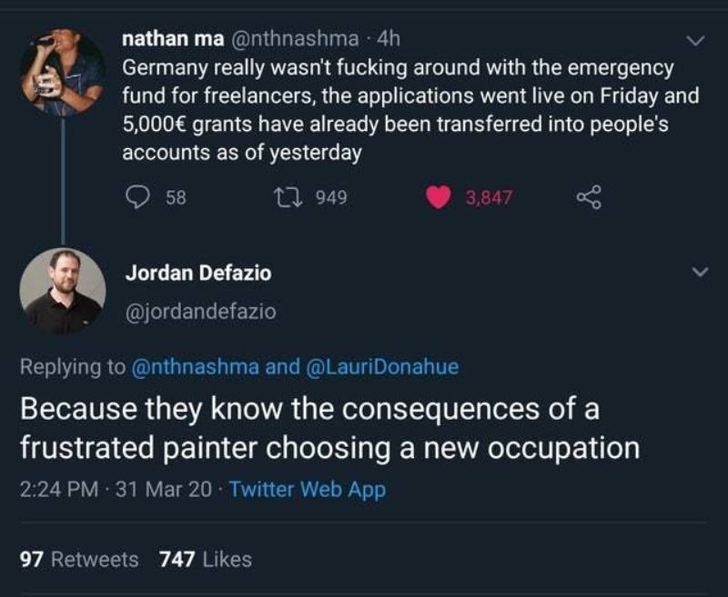 Попросил знакомого немецкого предпринимателя кратко и только по фактам расписать, какие конкретные меры поддержки бизнеса и сотрудников к настоящему моменту реализованы в Германии. Федеральная земля — Берлин.
