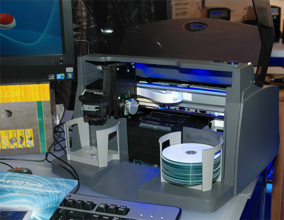 Ну и там же - принтер, аналогичный тому, что мы уже видели - прожигает и печатает на лицевой части диска.