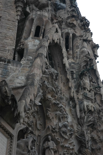 Я знал, что Гауди - он человек совершенно удивительный, фактически второй Леонардо - то есть какой-то марсианин. Sagrada Familia - это совершенно марсианская постройка. Причем ее строят уже 128 лет - с 1882 года. Просто Гауди сказал, что никакого государственного финансирования, так что должны строить только на пожертвования прихожан. Да и то - там куча ограничений. Поэтому самая высокая церковь в мире (выше даже Собора святого Петра в Риме) строится до сих пор. И еще непонятно сколько будет строиться. Но это произведение нечеловеческого разума. Это что-то невероятное! (Погода была паршивая, но все равно видно хорошо.)