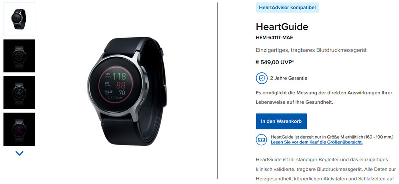Часы Omron HeartGuide стоят аж €550, что, на мой взгляд, супердофига, особенно учитывая тот факт, что как умные часы они кроме измерения давления умеют только измерять пульс, показывать уведомления и считать шаги. Более ничего. То есть их функциональность сильно проще функциональности фитнес-браслета за 40 евро.