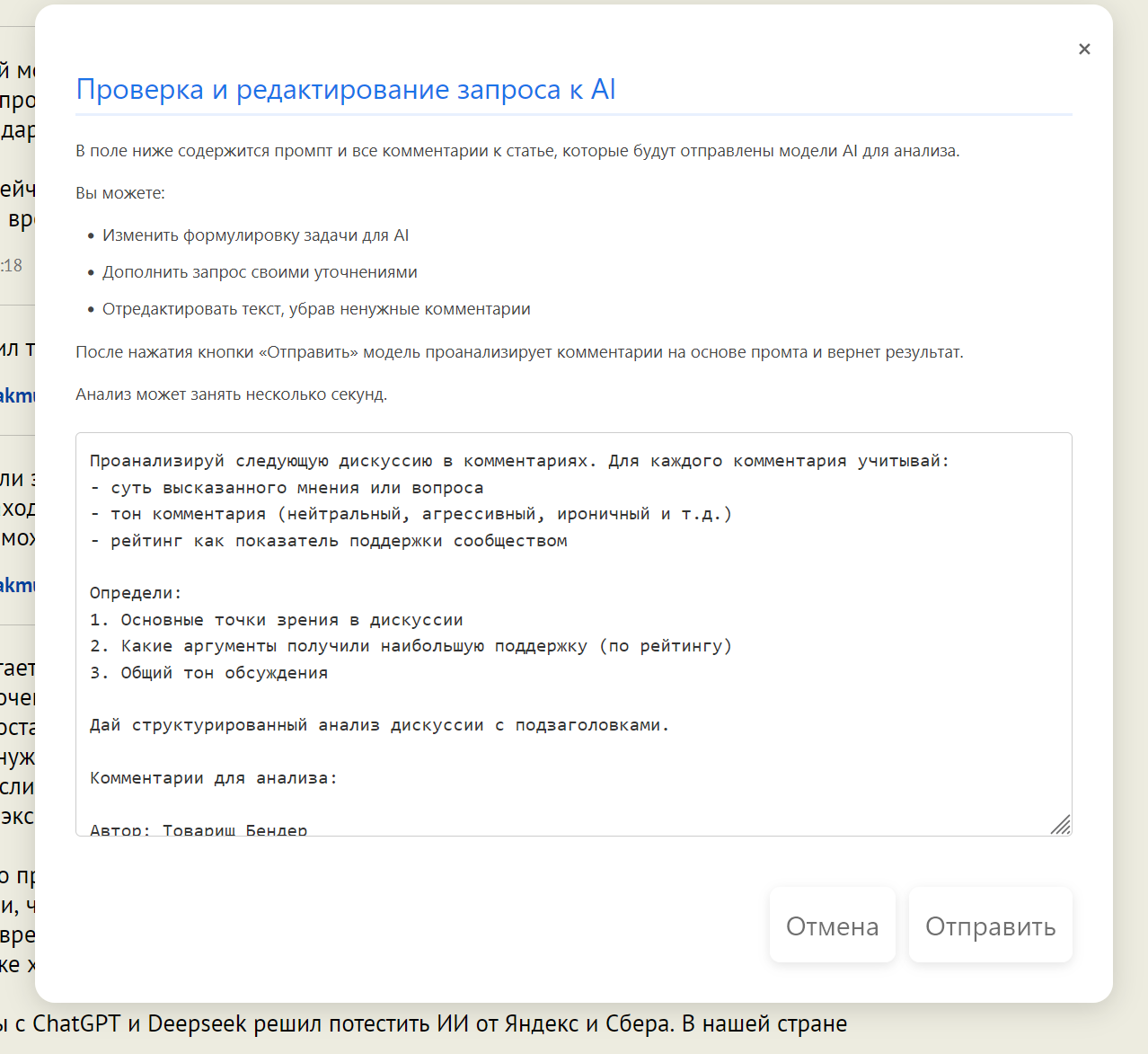 Также мне было интересно, справится ли ChatGPT с пересказом, например, интервью. Попросил его пересказать разговор с политологом Дмитрием Орешкиным в "Грэме". И тоже результат получился очень даже неплохой - тоже под катом после рецепта.