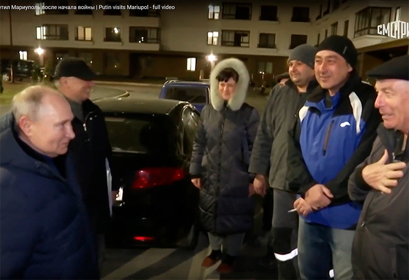 Тем более, что бедный Мариуполь максимально нашпигован оккупантами, все гайки закручены до упора, муха не проскочит – плюс ещё и все немногие оставшиеся жители либо максимально запуганы репрессивными оккупационными властями, либо и вовсе сами ватники (вот как туловища на видео). То бишь, даже для трусливого Хуйла обстановка выглядит уже не такой уж и ссыкотной.