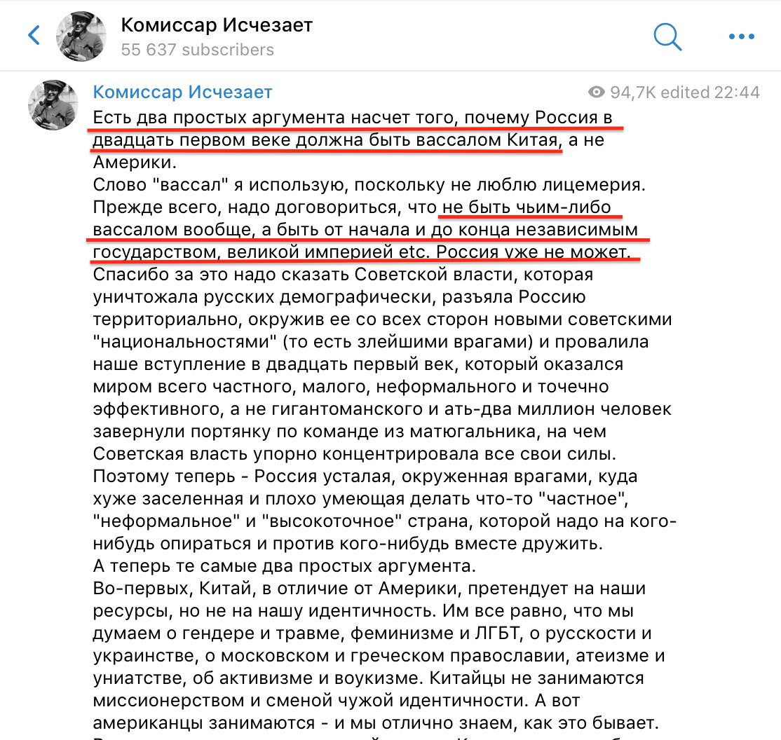 Руссо-патриото уже вовсю начинают жечь обоснованиями почему расея немедленно должна стать вассалом "Желтого Господина", очень рекомендую почитать: