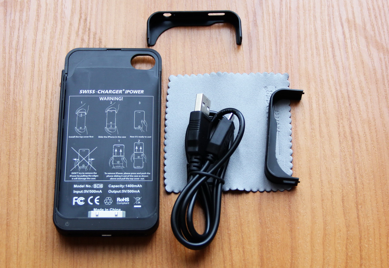 Комплектация - чехол-зарядка, кабель USB-microUSB, крышки-насадки для iPhone 4 и iPhone 4S, тряпочка для нюханья паров бензина.