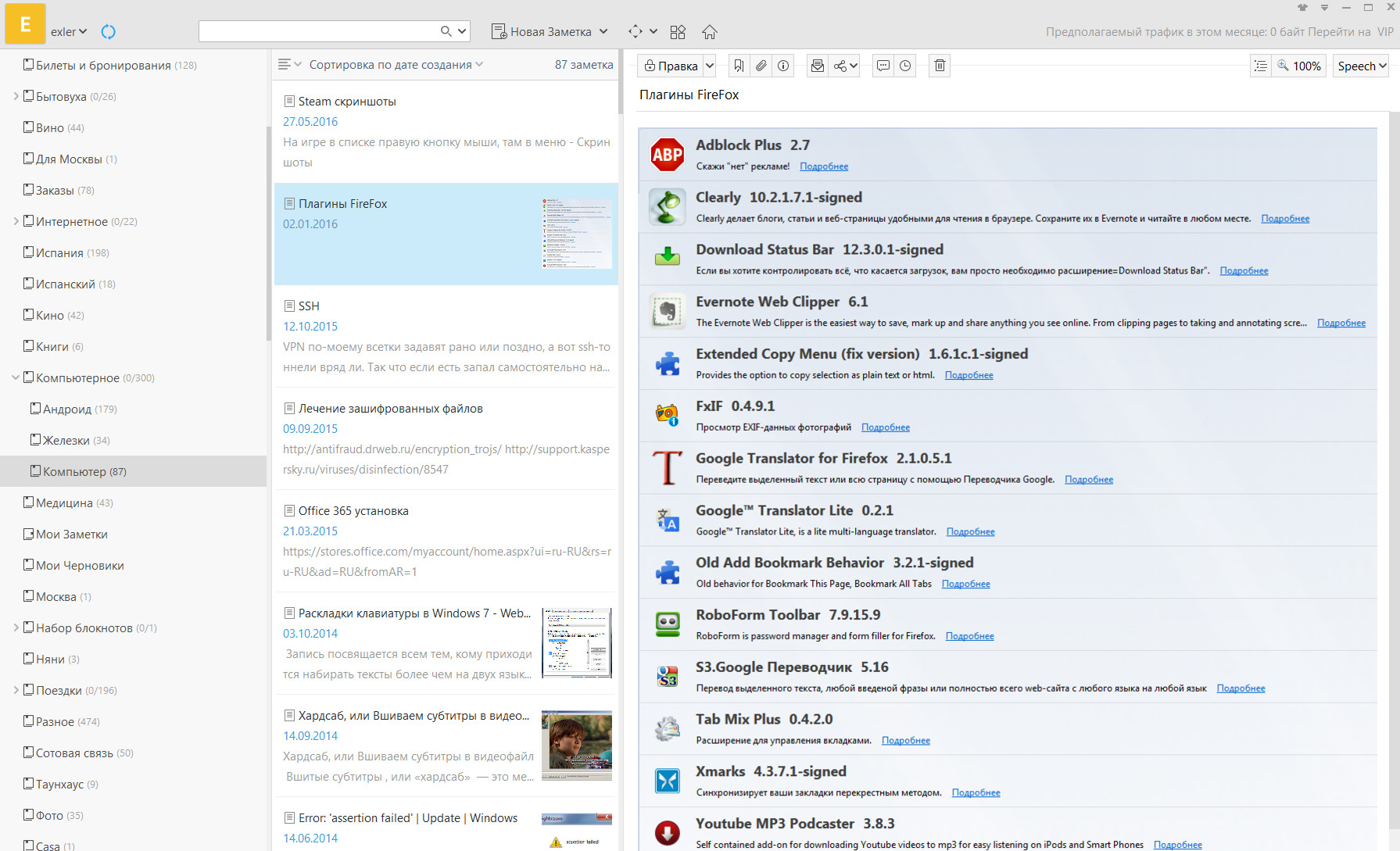 И заметки Evernote хранятся в проприетарном формате БД. То есть доступ к ним не по щелчку пальцев. А инструментарий для экспорта не всегда работает корректно. А в WizNote ваши данные хранятся очень просто - в виде папок и зазипованных html-файлов. Блокнот=папка, заметка=html в зип-архиве. И уже никакого экспорта не понадобится, если что.