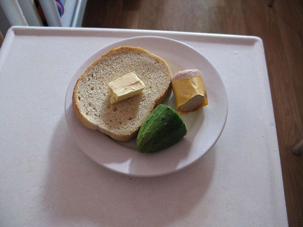 То, что про Польшу изображено - предположу, что это завтрак был. Ну нормально же - бутерброд с паштетом.