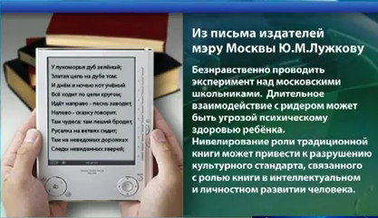 Когда я впервые прочитал о том, что в Москве собираются внедрять электронные ридеры в школах - сначала порадовался, а потом очень удивился. Как известно, поставка учебников - это многомиллиардный бизнес, несравнимый по объемам даже с бизнесом поставки наркотиков во все учебные заведения страны. А где многомиллиардный бизнес - там серьезное лоббирование.
