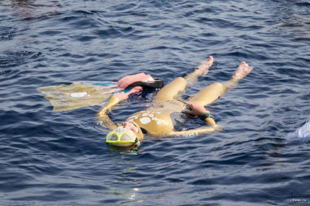 Наталья в это время делает заплыв вокруг места погружения - отдыхает.