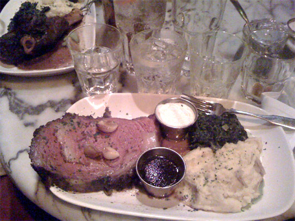 Ниже - мой стейк. Причем мясо выглядит как будто сырое (я заказывал прожарку medium rare), хотя на самом деле приготовлено и очень вкусное.