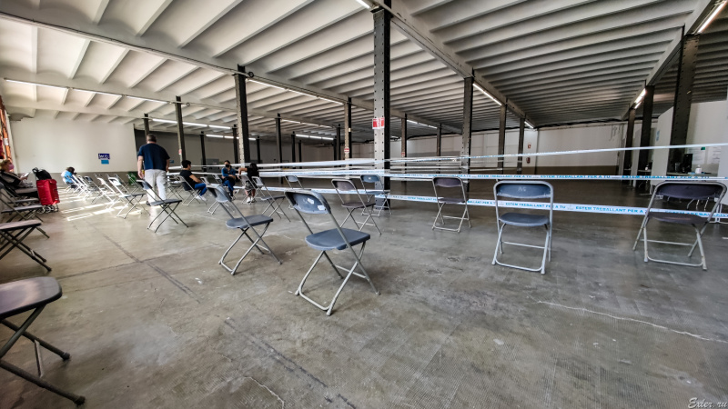 Здоровенное помещение, народу очень мало. Тетенька на входе проверяет имя по списку, приглашает пройти вперед. Там в кабинке дама выясняет, первая ли вакцина или вторая, называет вакцину (если она тебя по каким-то причинам не устраивает, то можешь отказаться и прийти в следующий раз, но заранее вакцину при записи не называют - они сами не знают, какая будет в тот день). Меня кольнули Файзером.