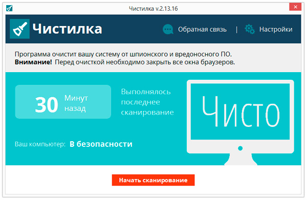 Чистилка - бесплатная программа для очистки компьютера от мусора, вредоносных, подозрительных и ненужных приложений