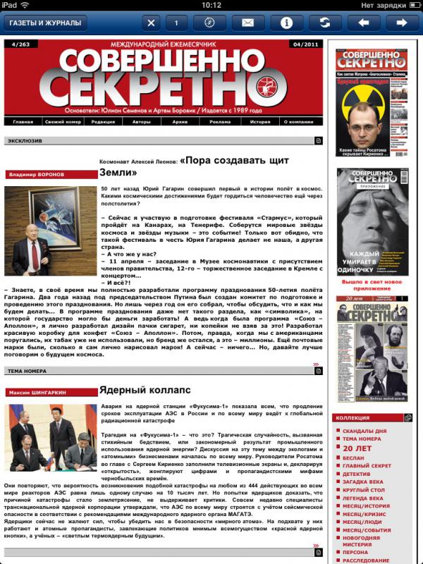Сейчас стали появляться всякие сервисы, которые предлагают электронную подписку на периодические издания - чтобы получать их в PDF. Ссылки на эти сервисы пока не даю - там пока все очень криво и каталог бедный. Я купил несколько изданий, чтобы посмотреть, реально ли это все читать на iPad - только так это имеет какой-то смысл.