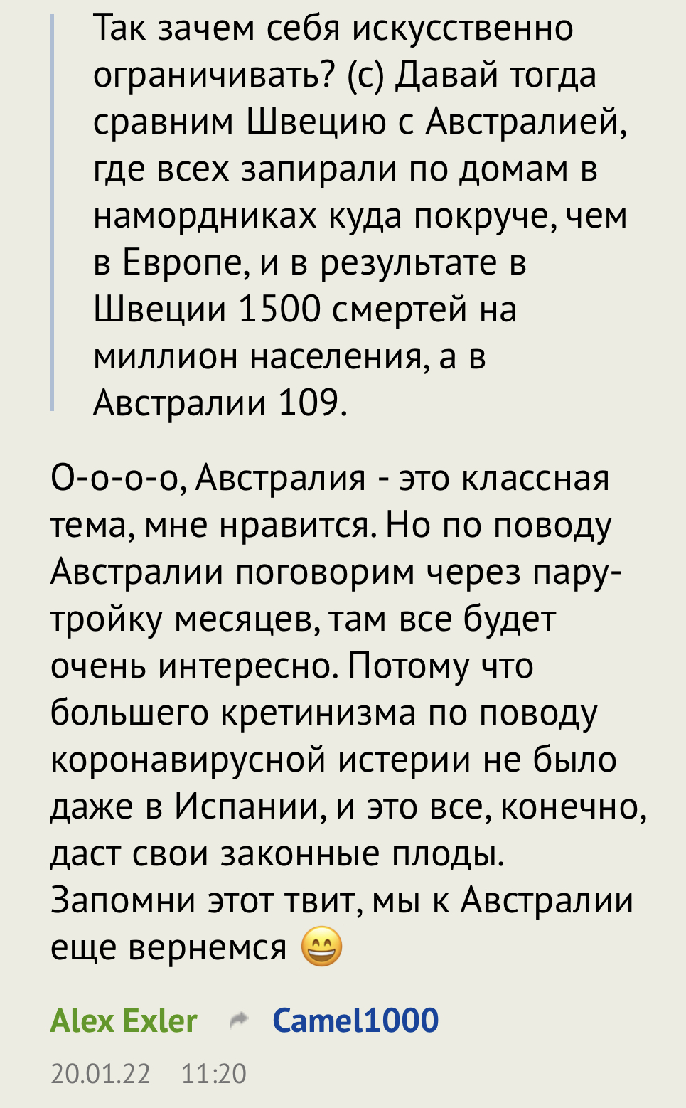 Всех начали снова пугать омикронном, но снова, в обычной жизни (в отличие от графиков) никакого ужаса не видно ( у меня уже человек 20 переболело этим омикронном, в основном из худшего течения болезни - пару дней температуры и дня пять ломота в суставах/мышцах, но никак не страшный мор, объясняющий почему бедные дети до сих пор должны целыми днями сидеть в школах в этих отвратительных масках (привет всем борцам с пандемией, которые в лучшем случае надевают маску на 10 минут, пока забегут в продуктовый, но потом рассуждают, что это позволило "хоть на чуть замедлить катастрофу и спасти жизни")).