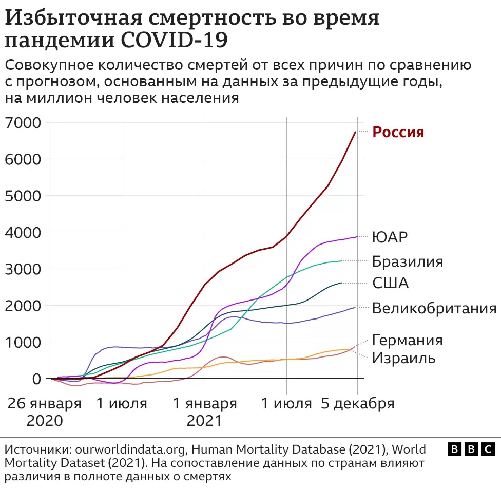 Избыточная смертность в России с апреля 2020 года до середины декабря 2021-го превысила миллион человек