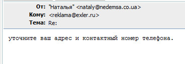 Это спам сегодня такой идет - на несколько адресов пришло. Кто-нибудь понимает, чего они этим хотят добиться? Ну, кроме адреса и контактного номера телефона.