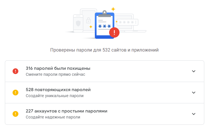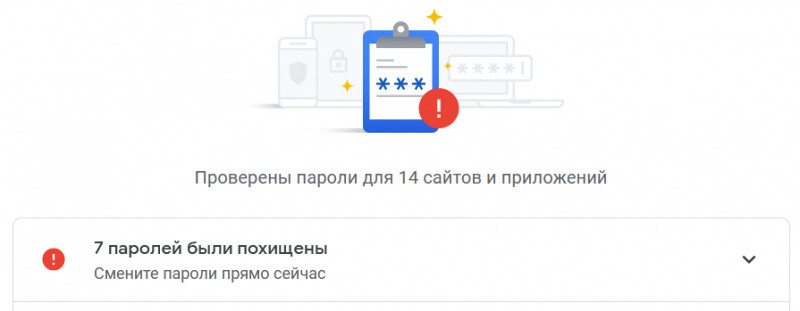 Но ссылка вела действительно на сервисы Гугла - пошел проверять. Пишет, что было похищено 7 паролей. Что значит "похищено", где похищено и что это за пароли вообще?
