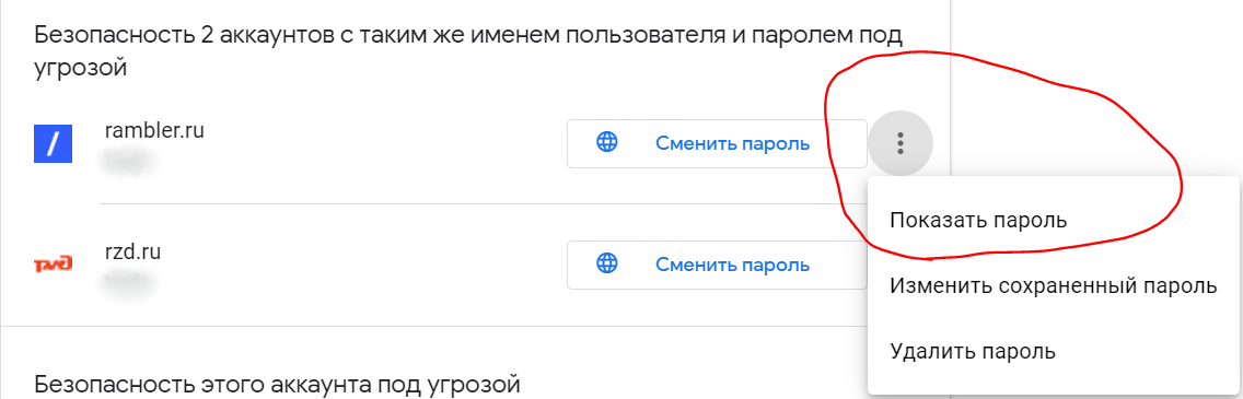 В итоге показал вот это. Там есть опция в меню "Показать пароль". Для двух первых сайтов показал какую-то полную ерунду - то самое слово "areas", которое я, понятное дело, в качестве пароля нигде никогда не использовал. А для остальных аккаунтов показал древний-древний пароль, который я последний раз использовал, наверное, лет пятнадцать назад.