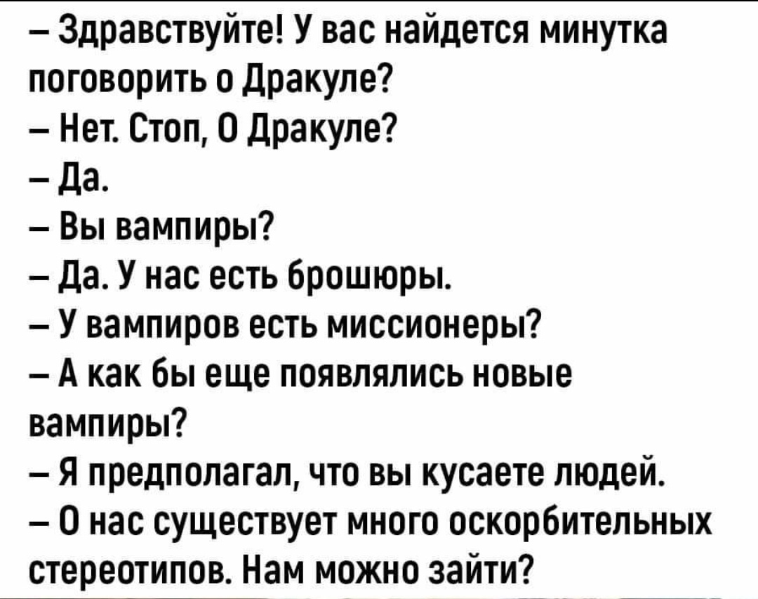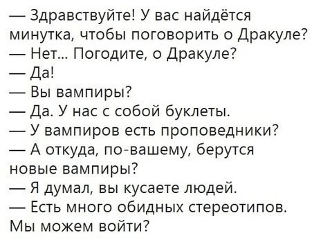 Говорю им, что уже принадлежу к другой конфессии. Когда интересуются к какой, отвечаю, что сатанист.