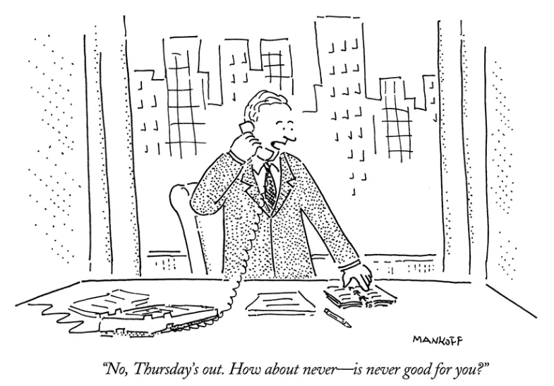 "Я же вам говорю - приходите завтра. А вы всё время приходите сегодня!" (не помню чьё)