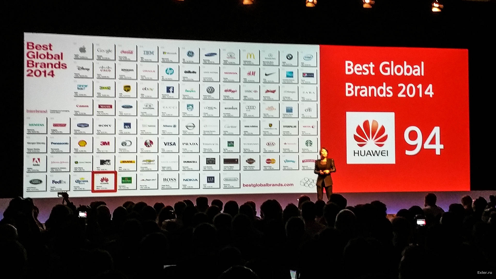 Вот какой идиот, написал потом каждый из этих журналистов в отчете о презентации, будет писать, что Huawei взошел на 94 место в списке лучших мировых брендов?!! Никто не напишет, ни один! Так что она зря старалась!