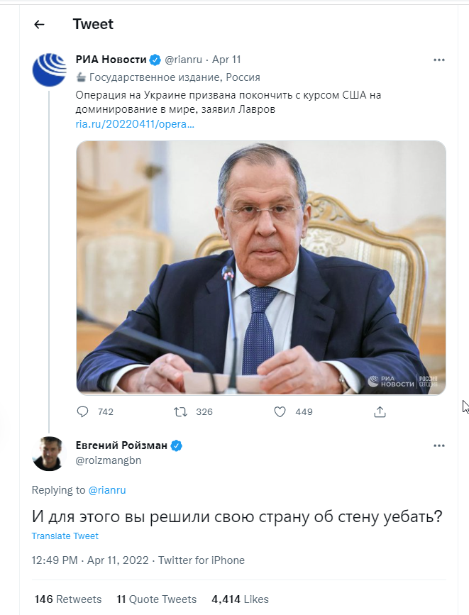А какая точка зрения у российской стороны? Биолаборатории, нацисты, сами себя бомбят, если бы за 6 часов...? Так это не точка зрения.